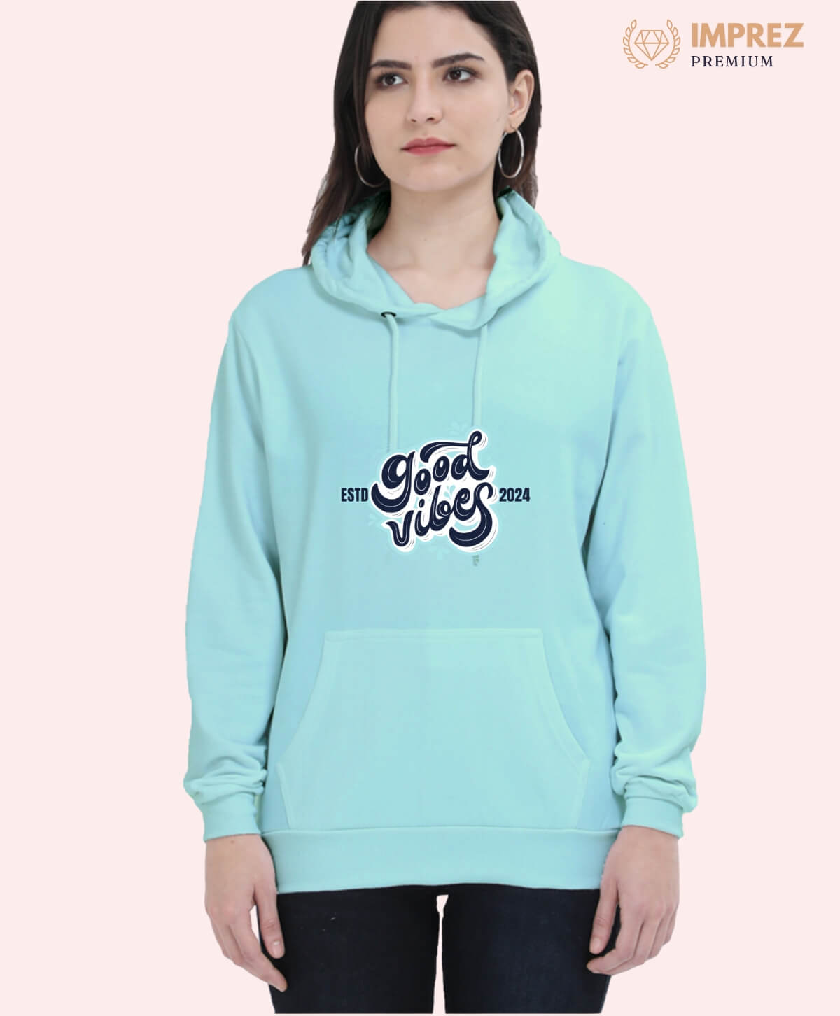 Our Good Vibes Women Hoodie is designed for those who value comfort, style, and positivity. With exclusive designs, high-quality fabric, and a perfect fit, this hoodie is a must-have in every wardrobe. Shop online in India and make a statement with your unique, customized hoodie.