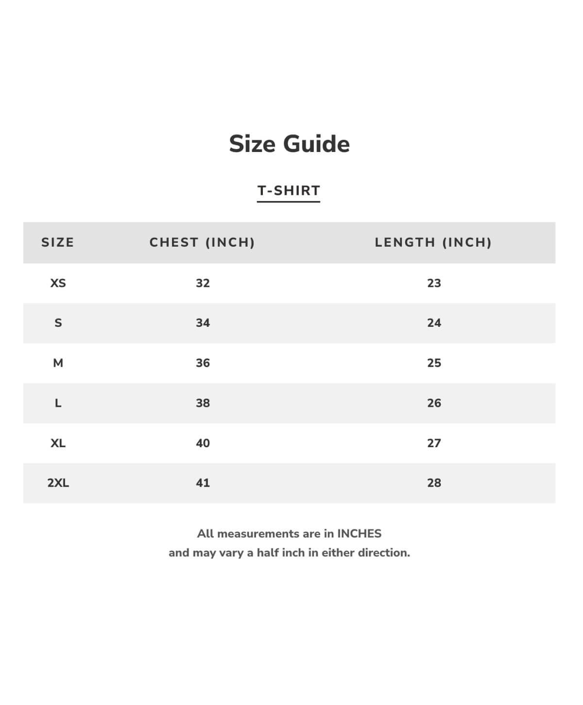| Size Guide | XS, S, M, L, XL, 2XL |